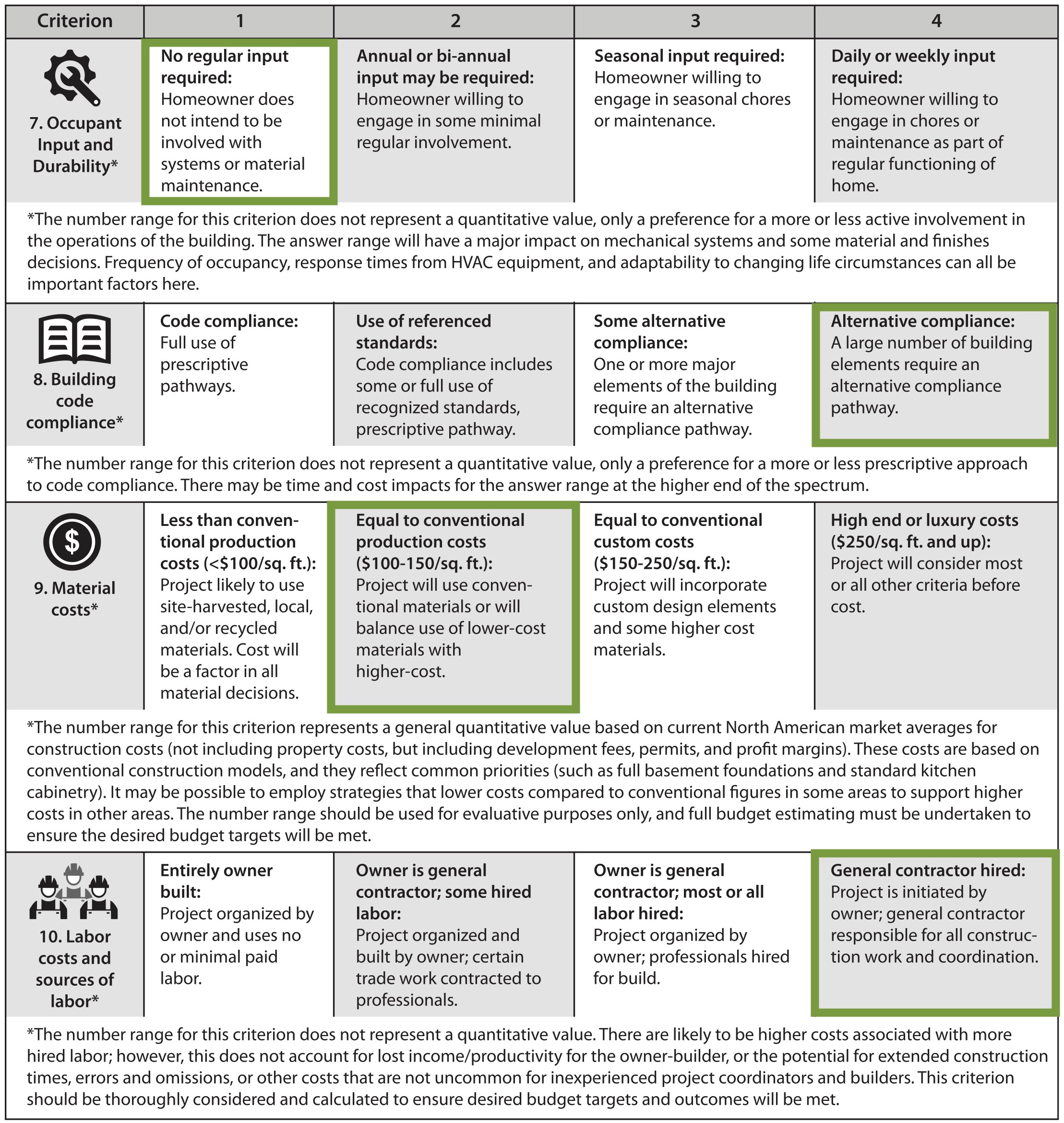As with all Endeavour projects, the design process starts with establishing the sustainable criteria from which we can start to choose appropriate materials and systems. For the Geneva Park cabin, the criteria matrix looks like this: